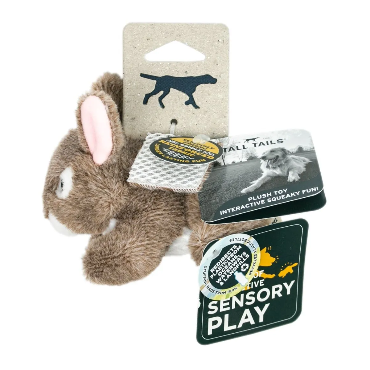 Continue the adventure indoors with Tall Tails' Baby Bunny with Squeaker toy! Throw, squeak, snuggle, repeat — this plush toy is made with you and your pup in mind. Fashioned for endless interactive play and cuddles, our plush toys make for paw-fect comforting companions. In addition, our squeakers are sewn into a separate pouch and stitched into the seam for extra protection.
