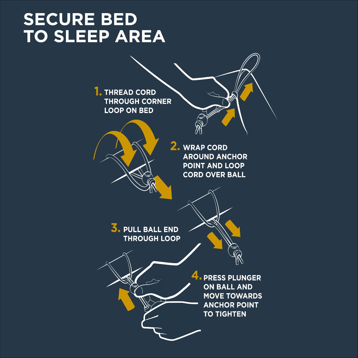 - Bungee cords included to secure bed to sleeping area