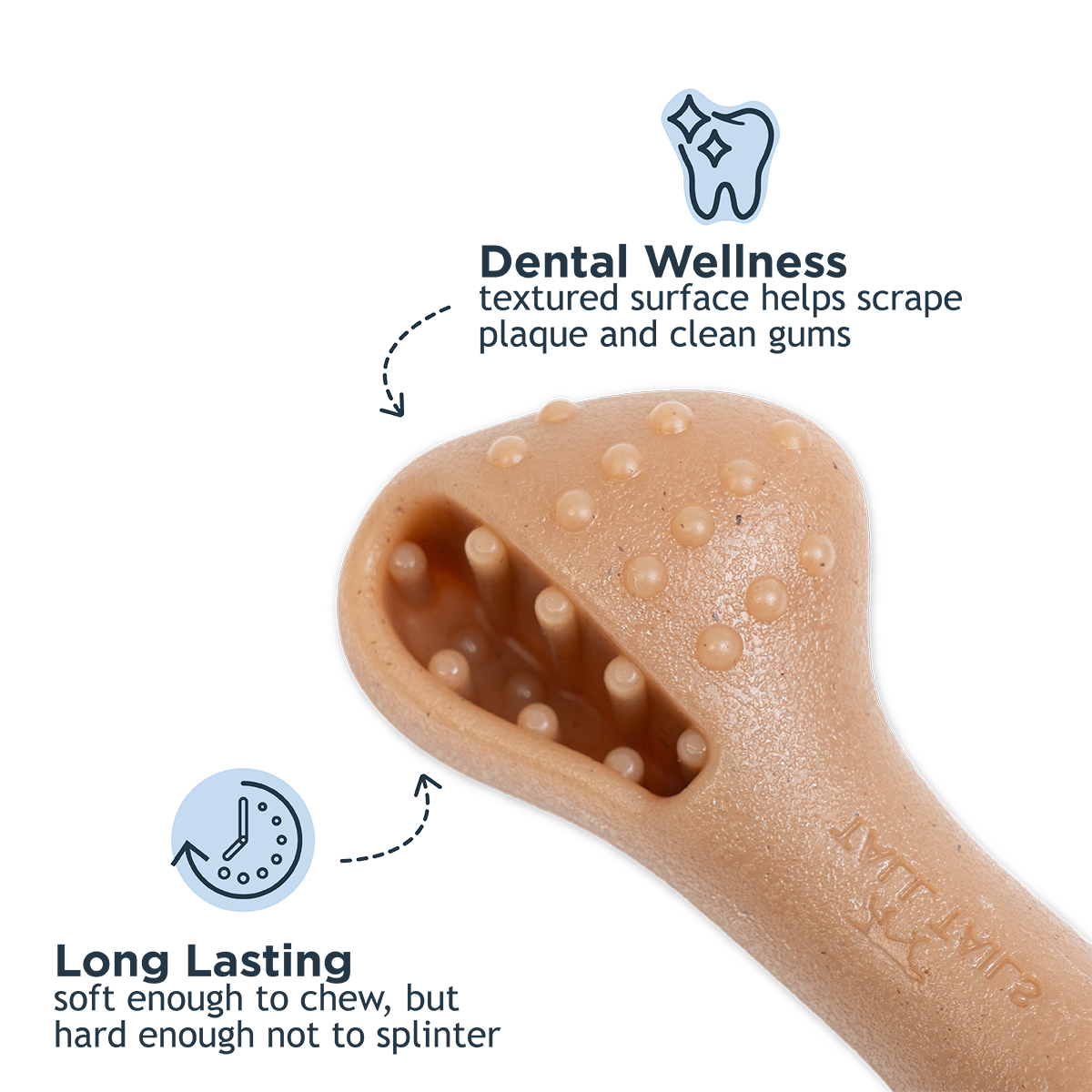 - Dental wellness textured surface helps scrape plaque and clean gums
